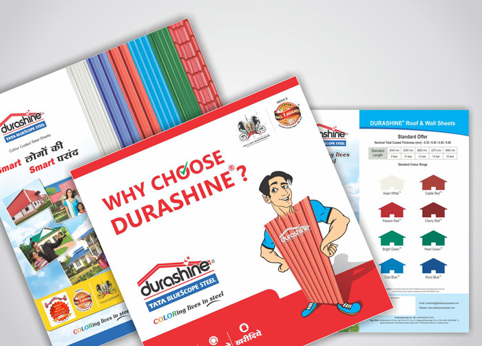 DURASHINE® is the flagship retail brand of Tata Steel Colors, which offers colour coated profile sheets in form of roof and wall solutions. The brand manufactures and sells roll formed colour coated steel roof & wall sheets, structural products and accessories. DURASHINE® offers aesthetically superior and durable roofing solutions for residential, commercial and industrial applications. Launched in the year 2008, the brand has won several awards and is the most preferred choice in this segment. Recently DURASHINE® has been recognised as “Asia’s Most Trusted Brand for Best Color Coated Steel Sheet Category by International Brand Consulting Corporation, USA.