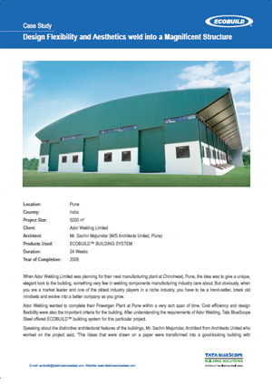 When Ador Welding Limited was planning for their next manufacturing plant at Chinchwad, Pune, the idea was to give a unique, elegant look to the building, something very few in welding components manufacturing industry care about.