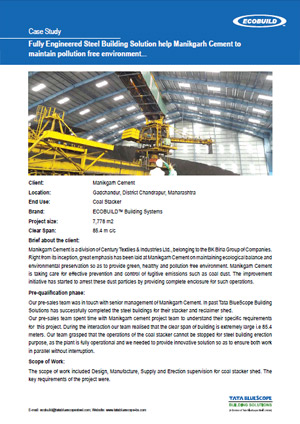 Fully Engineered Steel Building Solution help Manikgarh Cement to maintain pollution free environment