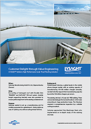 Salcomp wanted to set up a manufacturing unit for mobile accessories for a global brand – Nokia, within an area of 12,000 sq. mts. with re-roong of total 160 Tons.
